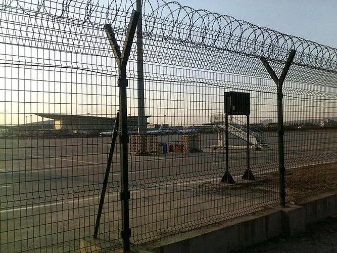 另外,在機(jī)場(chǎng)飛行區(qū)隔離網(wǎng)頂部都會(huì)設(shè)有一個(gè)柱狀的圍欄,其主要目的是未來(lái)防止人們的攀爬也是為了保障其他人身安全。這里會(huì)采用些三角折彎性護(hù)欄網(wǎng),在表面設(shè)計(jì)、防腐層、結(jié)實(shí)度方面,都會(huì)有一定的特點(diǎn)。機(jī)場(chǎng)飛行區(qū)隔離網(wǎng)又稱作“機(jī)場(chǎng)護(hù)欄”、“Y型安全防御護(hù)網(wǎng)",它是由V型支架立拄,加強(qiáng)型焊接片網(wǎng),安全防盜連接件和熱鎮(zhèn)鋅刀片刺籠組成。安全防御性級(jí)別很高的隔離柵產(chǎn)品。近年來(lái),被廣泛應(yīng)用在機(jī)場(chǎng),軍事基地等高安全場(chǎng)所。