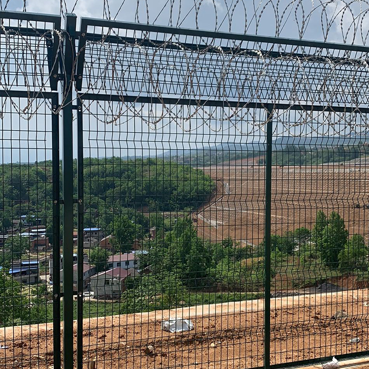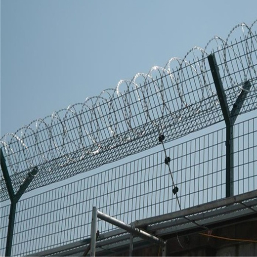 機(jī)場圍欄網(wǎng)由安全防盜連接件和熱鍍鋅刀片刺籠組成,是具有高強(qiáng)度和安全防御級別的隔離柵產(chǎn)品。近年來,機(jī)場圍欄網(wǎng)已被廠泛應(yīng)用于機(jī)場、軍事基地等高安全場所。在機(jī)場圍欄網(wǎng)的頂部加裝刀片刺絲、刀片刺繩,可有效增強(qiáng)安全防護(hù)性能。原料材質(zhì):采用國標(biāo)Q195低碳鋼冷拔絲、管等。