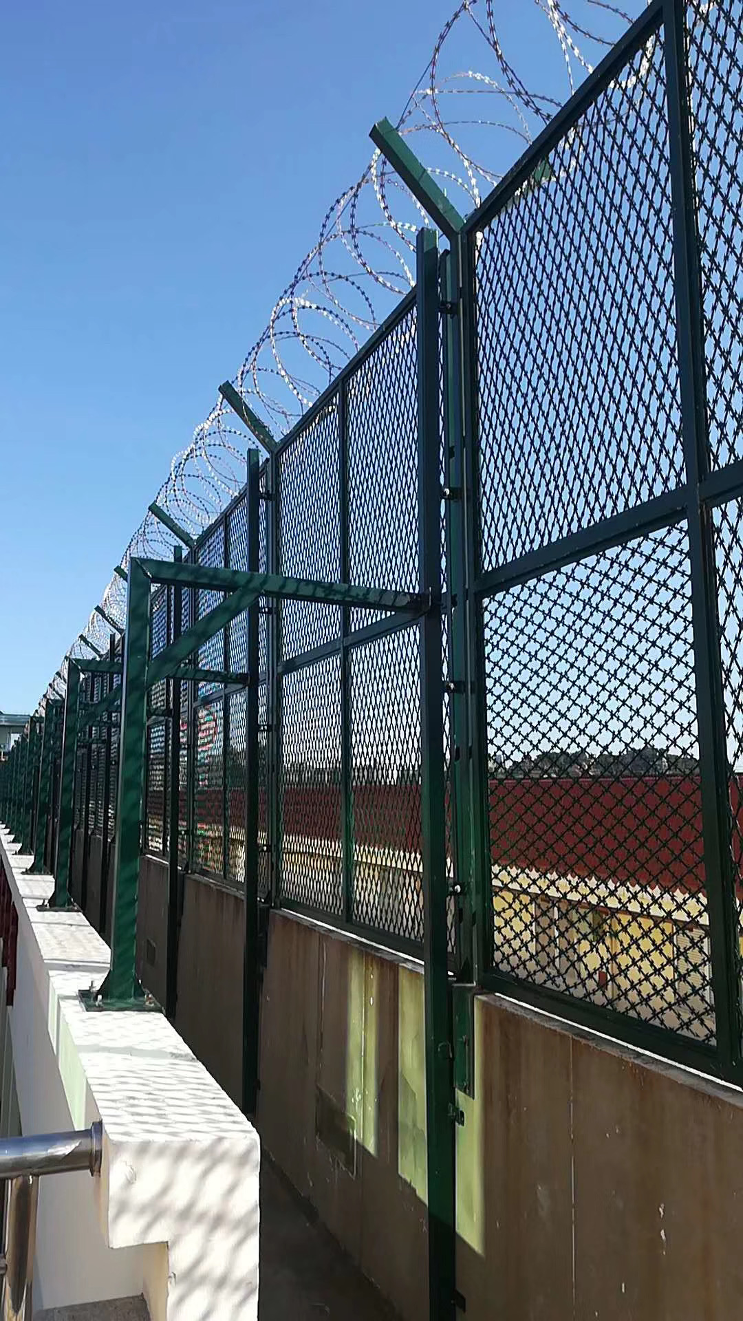 巡邏道隔離網(wǎng)是監(jiān)獄、看守所等高戒備場所與外界較近距離的接觸點,具有監(jiān)視、威懾作用。為了增加監(jiān)獄的安全性和方便監(jiān)視,在監(jiān)獄巡邏道兩側(cè)需要安裝防護用金屬隔離網(wǎng)。監(jiān)獄巡邏道隔離網(wǎng)配合高壓打擊電網(wǎng)、各種監(jiān)控報警設(shè)備確保監(jiān)獄安全萬無一失。 巡邏隔離網(wǎng)由:鋼絲網(wǎng)片、立柱、刀片刺網(wǎng)組成。