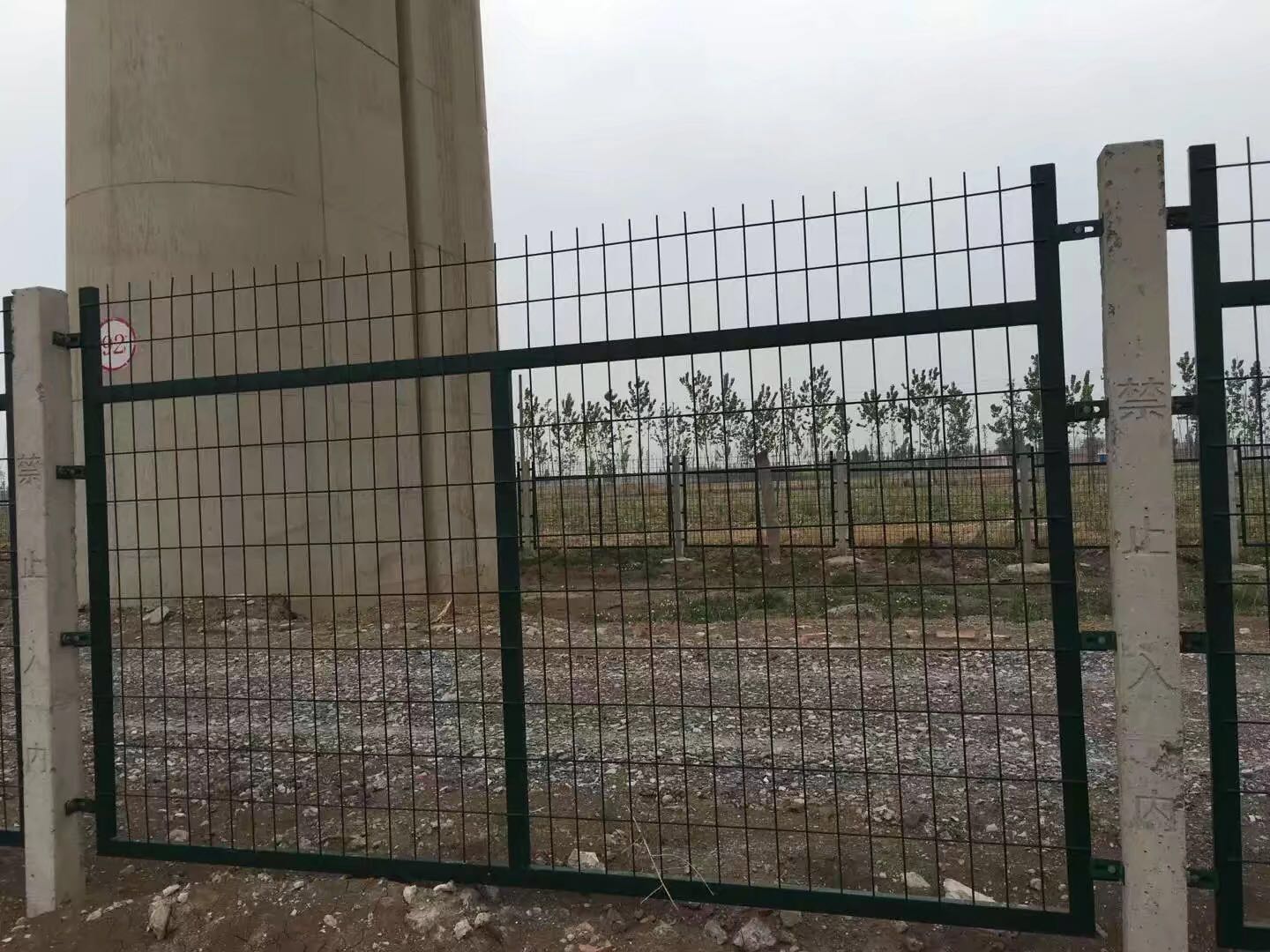 而8001的圍欄網(wǎng)端部有30度折彎,兩片金屬片網(wǎng)柵欄之間混凝土立柱上方有994mm長40*40*2.5mm的方管作為連接件使用。兩種金屬網(wǎng)片防護柵欄現(xiàn)貨銷售都是標準的墨綠色熱浸塑處理產(chǎn)品,符合鐵路驗收標準。