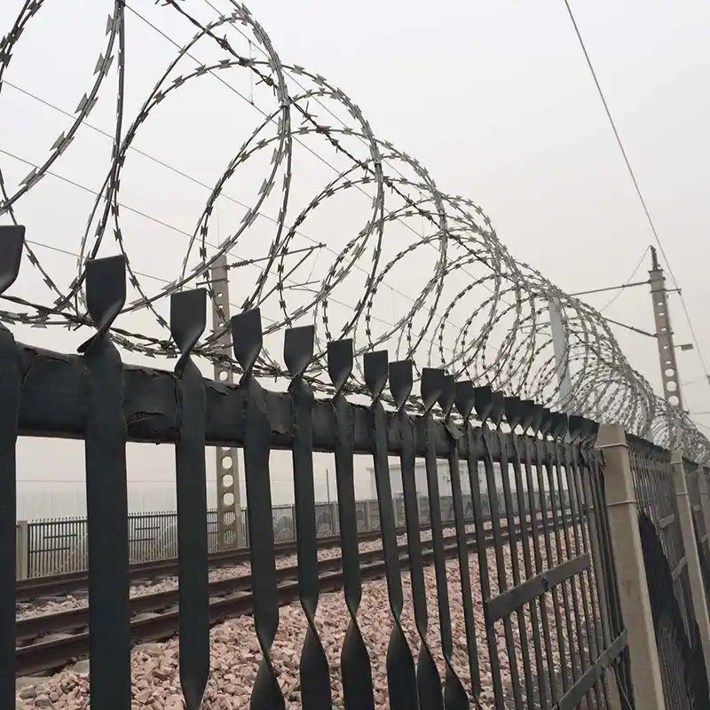 跨度為3米。在用刀片纏繞帶刺鐵絲網(wǎng)之后,每隔120度用帶刺鐵絲網(wǎng)夾固定帶刺鐵絲網(wǎng),并用柵欄代替柵欄。圍欄更具防御性。壽命更長:鋼筋混凝土圍欄+ 0.5米高BARBED滾動保持架。拼接支架由矩形鋼管制成,與柱支架相同。該產(chǎn)品具有防腐,抗老化,抗日光和耐候性的特點。施工速度快,不僅省錢,而且有效地起到了威懾作用